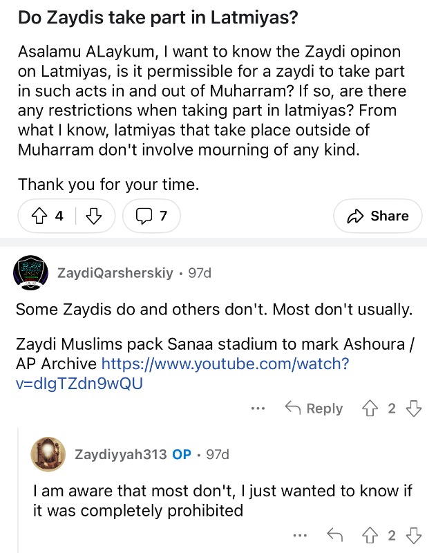 Replied by Imam Rassi Society on topic do zaidi Shia do matam?